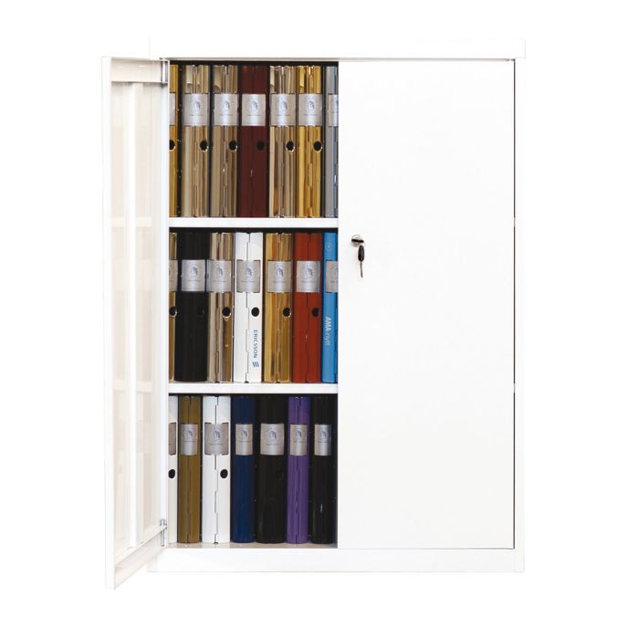 Förvaringssåp Office 1100 har helsvetsade och färdigmonterade förvaringsskåp med två fasta hyllplan anpassade för pärmar. Lås med två nycklar.