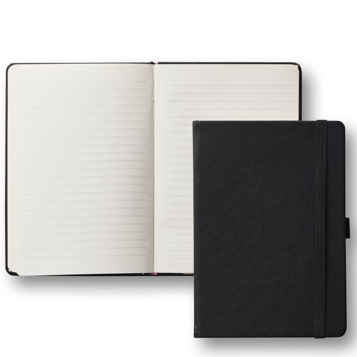 Den eleganta och stilrena anteckningsboken Classic är tillverkad med hög kvalitet och har ett robust konstläderomslag samt ett elastiskt band för att hålla boken stängd.