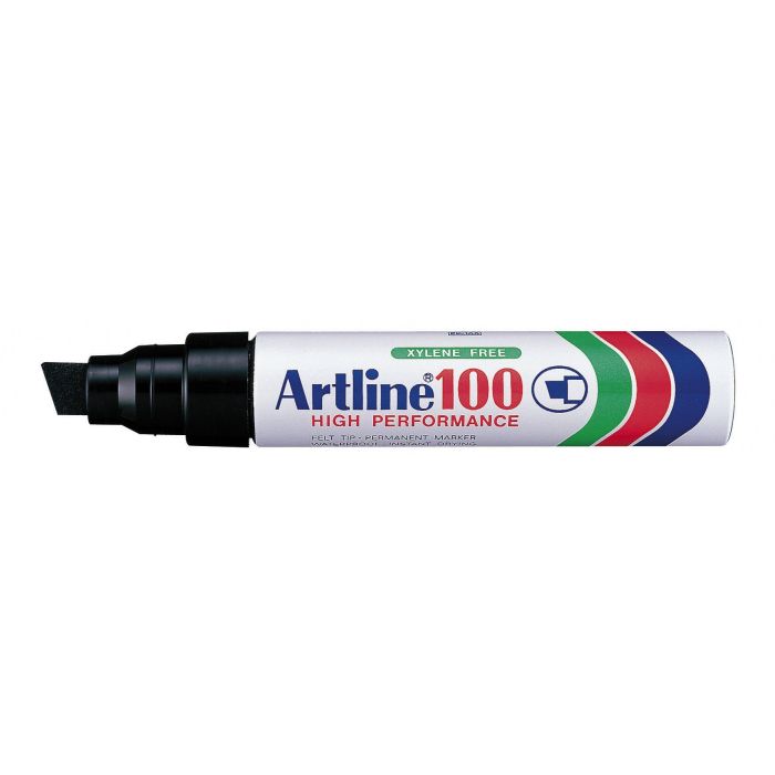 Märkpennan Artline 100 för permanent märkning på metall, glas, papper, plast, kartong, textilier m m. Klarar både värme och kyla.