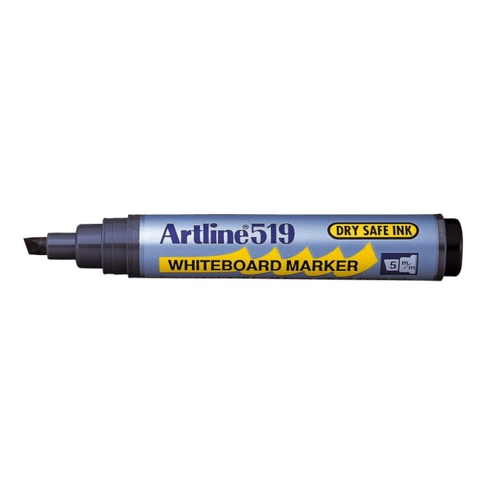 Whiteboardpenna Artline 517/519 som kan vara utan huv i 48 timmar utan att spetsen torkar.. Vältäckande pigmentfärger som ger ett jämnt färgflöde. • Nästan luktfria • Lätt att torka bort • Lämpliga även för blädderblock
