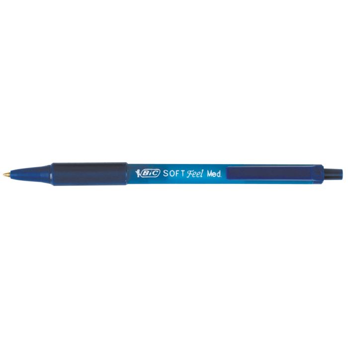 Kulspetspennan Bic Soft Feel av polypropylenplast som har en gummiliknande yta för skönare skrivkänsla och bättre grepp. Godkänd med dokumentäkta bläck enligt ISO 12757-2.