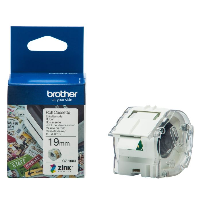 Fortlöpande etikettrulle för utskrift i färg. Med Brothers etikettrulle kan du skapa etiketter i färg för en mängd olika märkningsbehov.