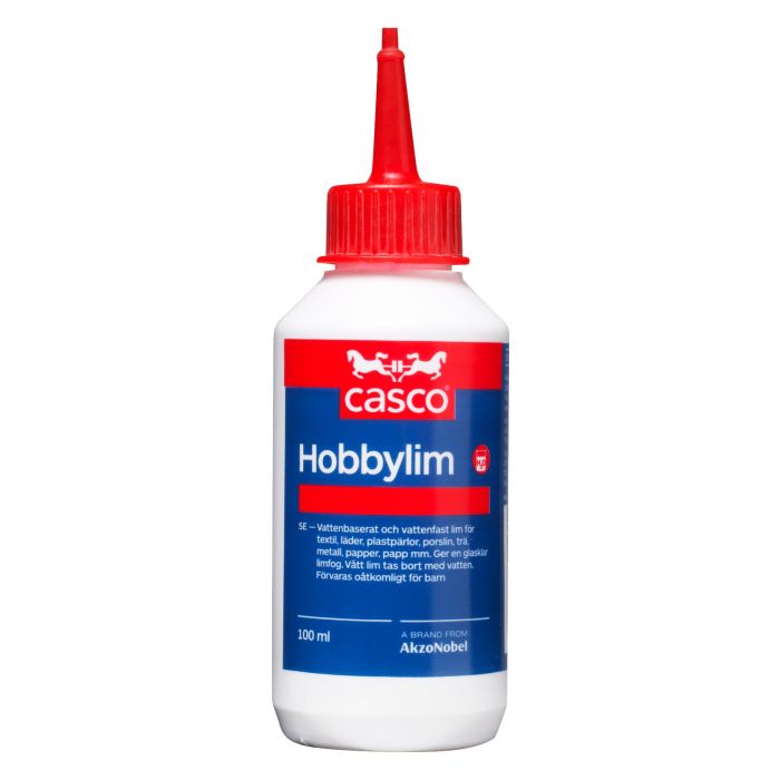 Hobbylim Casco är ett vattenbaserat allroundlim för hobbyarbeten, textil, papper och trä, plastpärlor, lampskärmar mm. Ger en transparent och mjuk limfog.