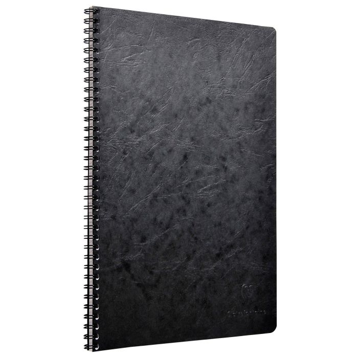 Clairefontaine kollegieblock AgeBag med dubbelspiral på vänster sida. Djupfärgad kartong med läder effekt.