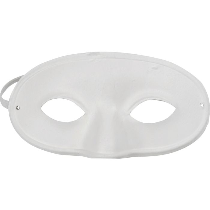 Formpressad mask av vitt papperspulp med elastiskt snöre. Här finns inga begränsningar med vilka motiv du ska välja - låt fantasin flöda med penseln, pennan, kritan och använd sax och lim för att klippa ur bilder och mönster från tidningar, bilder, tyger mm.