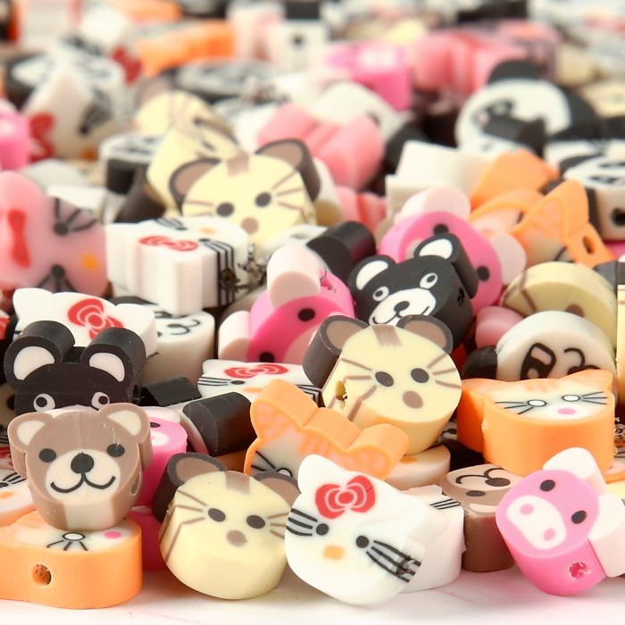 Dekorativa djur lerpärlor med horisontala hål. Förpackning med 8 mixade designer. • Ø 1 mm • Hålstl. 1,5 m • 200st/fp