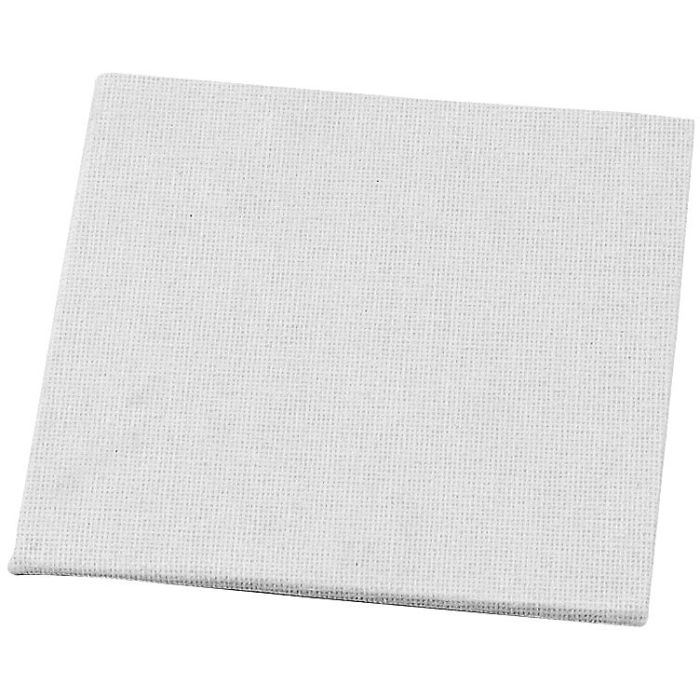 Vit målarduk uppspänd på en pappskiva som limmats fast. Lämplig till att måla eller dekorera till tavlor för olika ändamål.