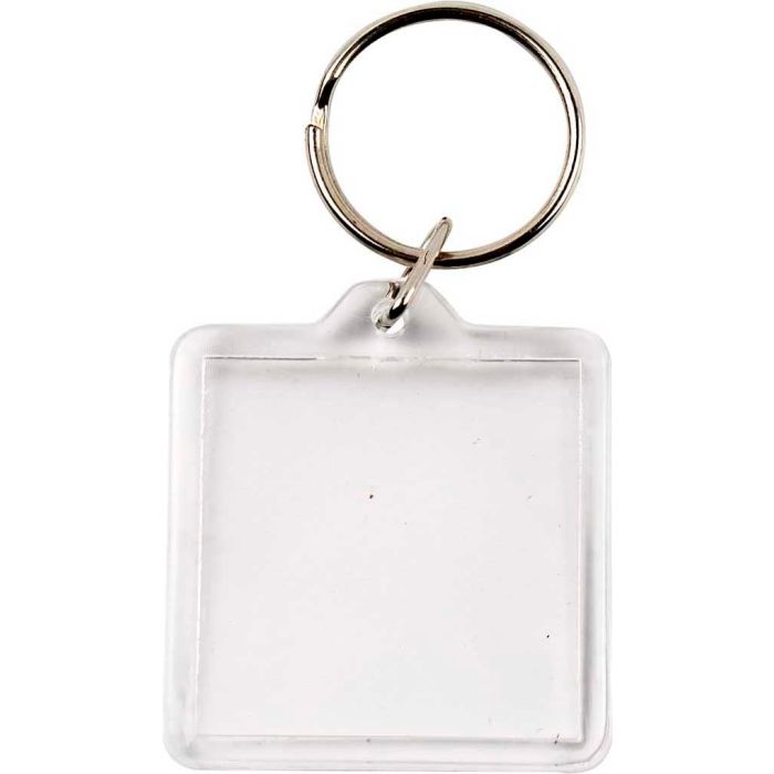 Nyckelringar med kvadratiska tvådelade halvor i klar akryl där du kan sätta in dina egna bilder eller foton. Dekorera även nyckelringen med egengjorda berlocker. • Transparent/klar akrylplast • Mått: 40 x 40 mm • 25 st/fp