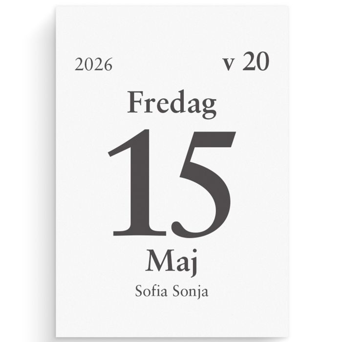 Följ året genom att riva av blad efter blad. Dagblocket har en vardag per blad och lördag och söndag på samma blad och det är limbundet med klammerbaksida. --Kalender 2026 från Burde --Format: 75x107 mm --Layout: Dag/sida --Kalendarium: 2026-01-01–2026-12-31 --Limbunden --Innehåll: Kyrkliga helgdagar, Flaggdagar, Helgdagar, Månfaser, Namnsdagar. --Antal sidor: 634 --Miljöinformation: FSC®