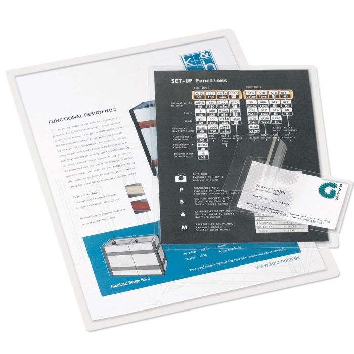 Självlaminerande fickor, laminera snabbt och enkelt. Lamineringsblad i PP för laminering utan maskin.