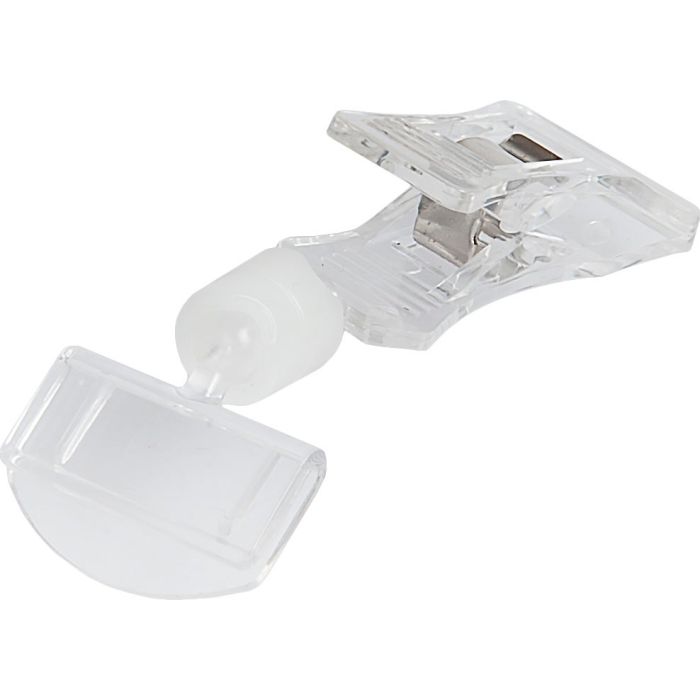 Prisklämmor, med ledad skylthållare.