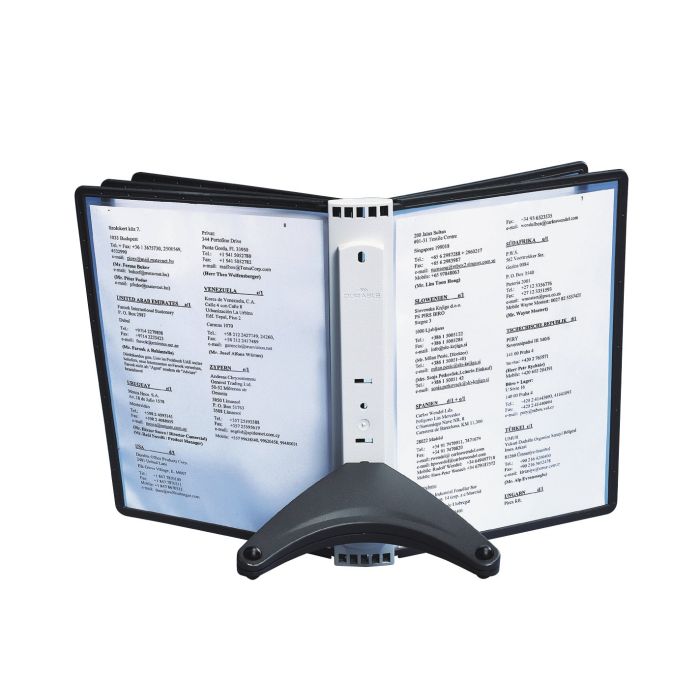 Panelsystem Durable Sherpa SoHo är ett komplett bordsställ med fem paneler för A4 i svart PP-plast. Smidig och funktionell design, tar liten plats och är enkel att montera och med högsta funktionalitet.