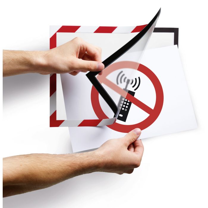 Sätt upp tillfällig eller mer varaktig säkerhets och varningsinformation på ett professionellt sätt med självhäftande DURAFRAME® SECURITY inforamar. Enkelt att sätta i eller skifta skylt genom att lyfta framsidan med magnetstängning. Lätt att sätta upp - utan verktyg eller andra tillbehör - på fasta och släta ytor. Snyggare och enklare hantering än t ex tejp, häftstift eller häftklammer.