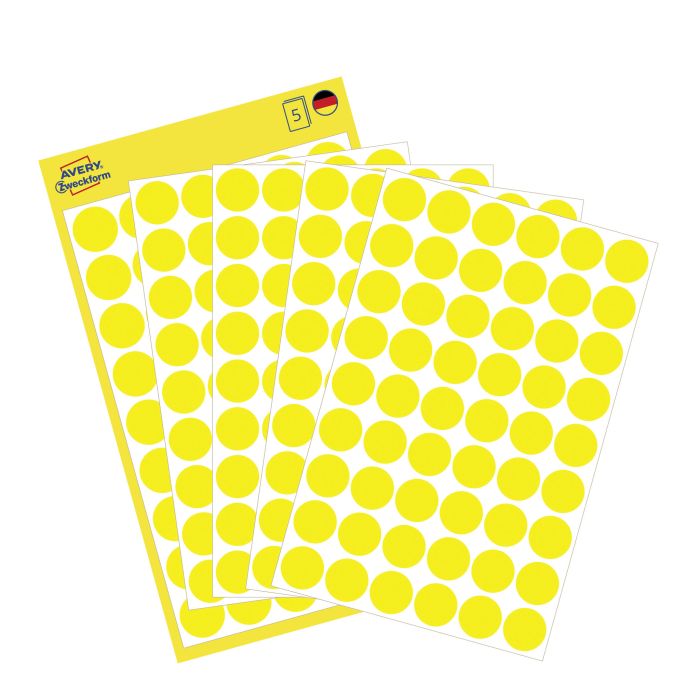 Runda självhäftande märketiketter från Avery för manuell användning. Kan användas för många ändamål - både på kontoret, i skolan och hemma. Olika färger för olika ändamål och synliggöra olika ämnen.