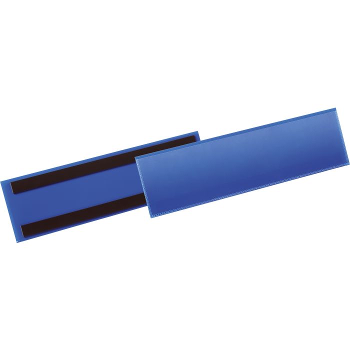 De magnetiska etiketthållarna av slitstark polypropylene går att läsa med skanner och skyddar de utbytbara etiketterna från smuts. Två magnetremsor på baksidan gör att fickan sitter stadigt på plats. Gratis mall för etiketten finns på www.duraprint.se. -- Blå -- Innermått: ½ A5 (210 x 74 mm) -- Yttermått: 223 x 81,5 x 2,3 mm -- 50 st/fp