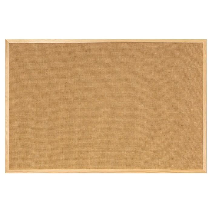 s anslagstavla med yta i väv och ram i trä.