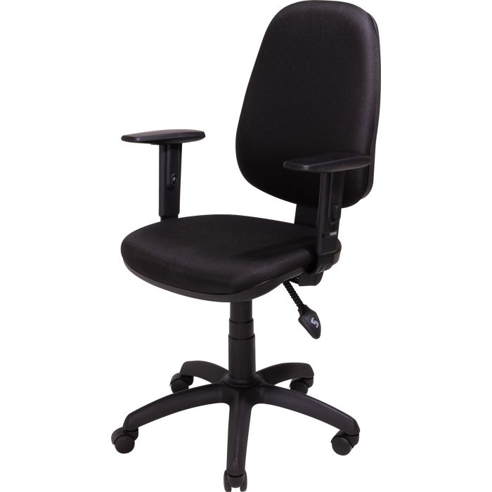 Välj - med eller utan armstöd! Svart Med eller utan armstöd Synkromekanism med totalt 3 spakar Rygg kan justeras på höjden samt även låsas i 7 positioner Sits och rygg kan justeras separat med 2 spakar Total höjd: 1050 - 1130 mm Total bredd: 510 mm Total djup: 560 mm Sitthöjd: 400 - 480 mm Sittbredd: 460 mm Sittdjup: 440 mm Diameter på underrede: Ø 600 mm Vikt: 11,5 kg Garanti: 2 år .