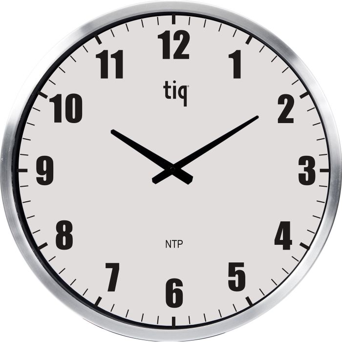Väggklocka Tiq - Ett stort analogt väggur med Ø 50 cm, som passar bra i större utrymmen – där man kan se klockan på längre avstånd. Kopplas in i datanätverket genom en vanlig nätverkskabel, ger ett pålitligt helautomatiskt tidssystem.