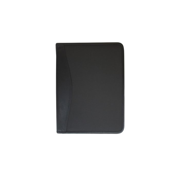 Snygg och stilren konferensmapp i slitstark svart nylon med detaljer i konstläder.