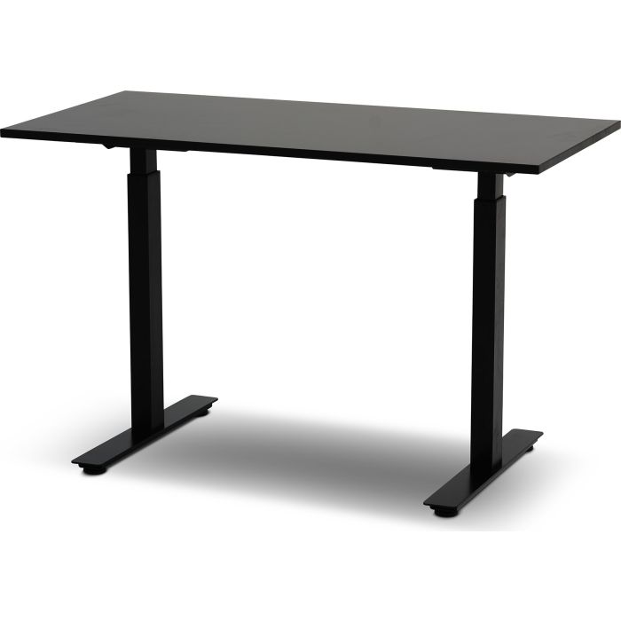 El-Skrivbord Madrid premium med 2-motor stativ 660 slag. Madrid ett bord med T-benstativ. Utmärkt som konferensbord eller arbetsbord. Flexibel sarg mot bordsskivan. Justerbara fötter. • Svart underrede • Svart bordsskiva i laminat • Mått: 1200 x 800 mm .