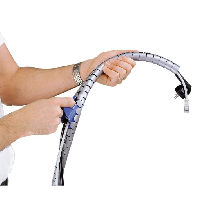 Flexibel sladdslukare / kabeluppsamlare i plast skyddar alla dina kablage. Kablarna dras enklelt i med hjälp av verktyget som medföljer - så kallad blixtlåsprincip.