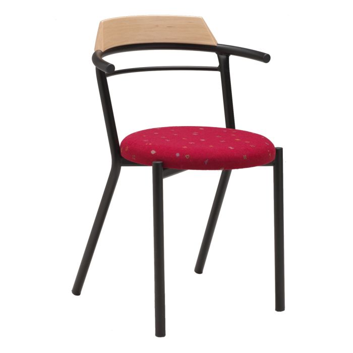 Stol i silverlackat stål med formpressat toppstycke i björk från Lanab. Klädd sits i 100% kamgarnsull.