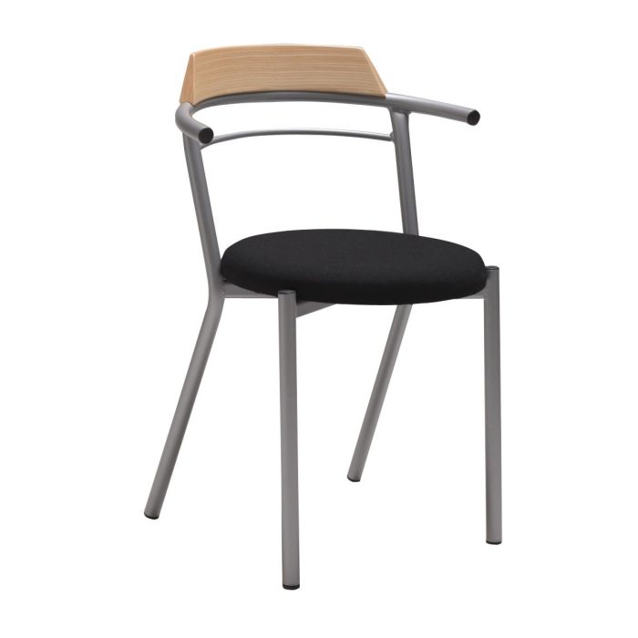 Stol i silverlackat stål med formpressat toppstycke i björk från Lanab. Klädd sits i 100% kamgarnsull.
