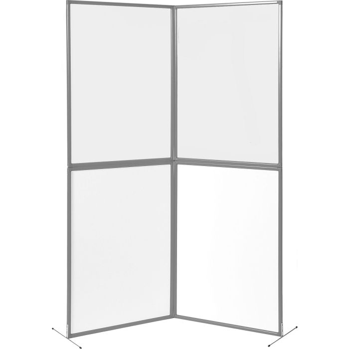 Ger en enkel men ändå effektiv social distanseringslösning för alla miljöer, samtidigt som den möjliggör tydlig och säker kommunikation. Innehåller: Grå 4 ramar 70 x 100 cm med paneler (2 lättviktsskivor, 5 mm och 2 transparenta skyddsfolier, 1 mm), kopplingar och stödfötter Totalt yttermått (BxH): 146 x 206 cm Undvik Covid-19 och andra infektioner och bakterier .