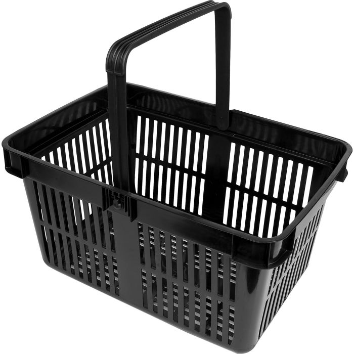 Kundkorg i den klassiska designen för användning i butik, varuhus och stormarknader. Kundkorgen i plast rymmer 27 liter utan hjul.