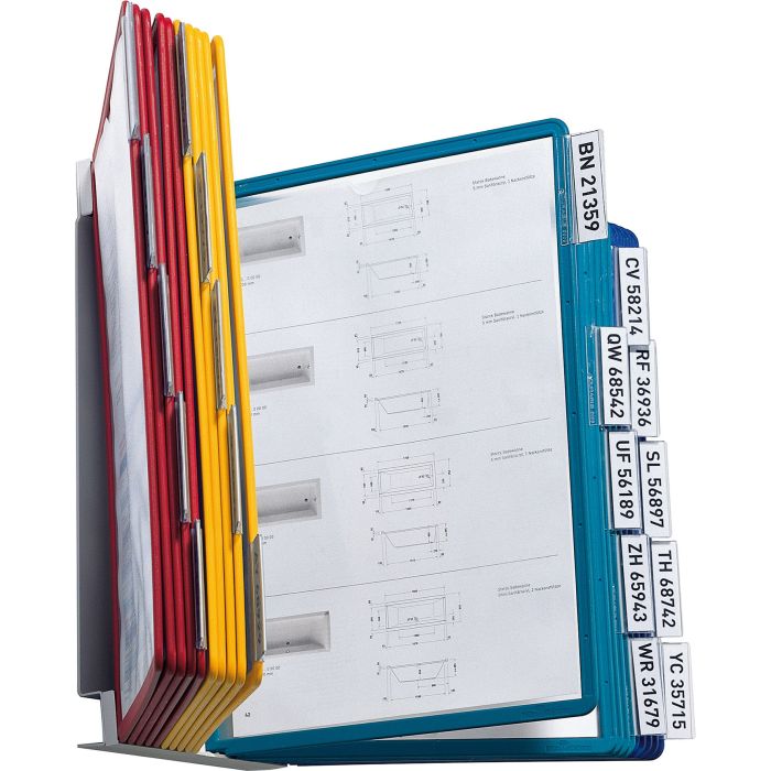Panelsystem Durable Vario är ett slitstarkt väggställ av metall med A4 paneler i reflexfri polypropylenplast.