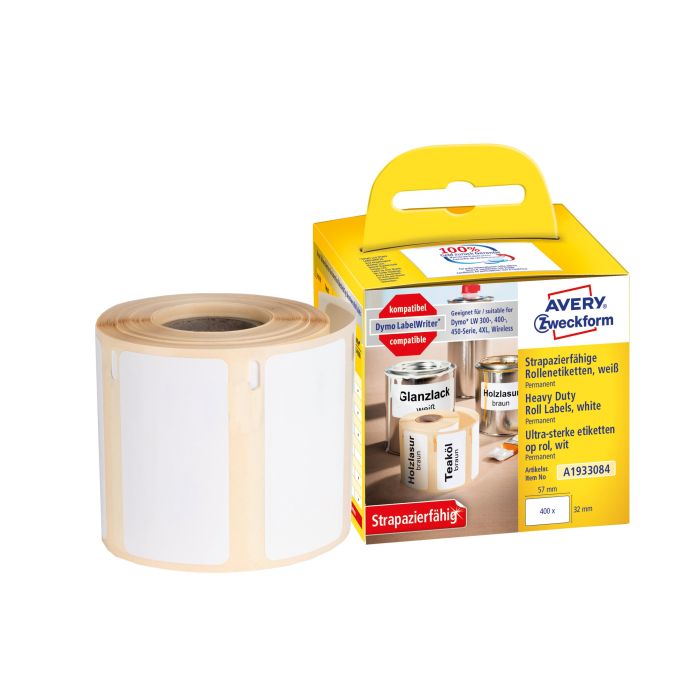 till IT-avdelningar, skolor och andra utbildningsinstitutioner, bibliotek och andra offentliga institutioner, företag med öppna kontorsmiljöer, hantverkare, entreprenadföretag som använder mycket IT-utrustning och verktyg. Averys A1933084 på rulle för etikettskrivare motsvarar DYMO® 1933084 och är 100 % kompatibla med DYMO® LabelWriter ™ LW310, LW330T, LW400 Serie, LW450 Series, 4XL och LW Wireless!
