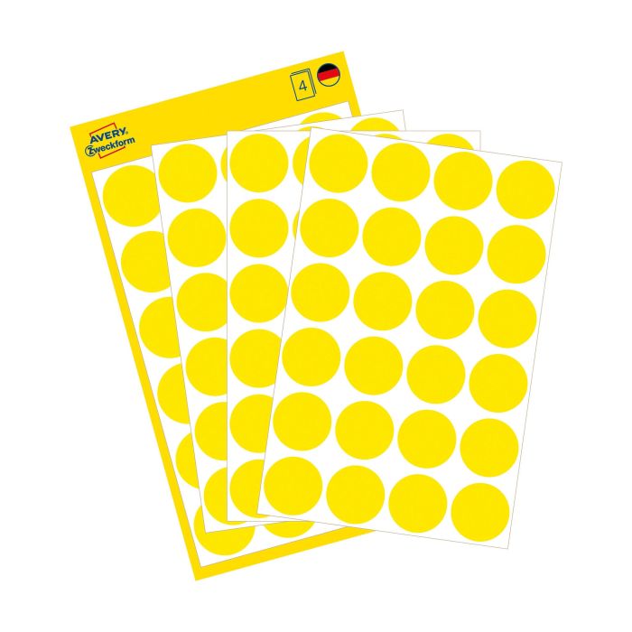 Runda självhäftande märketiketter för manuell användning från Avery. Kan användas för många ändamål- både på kontoret, i skolan och hemma.