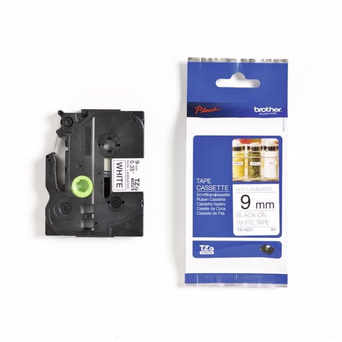 Brother Märkband TZeN221 9 mm x 8 m svart/vit