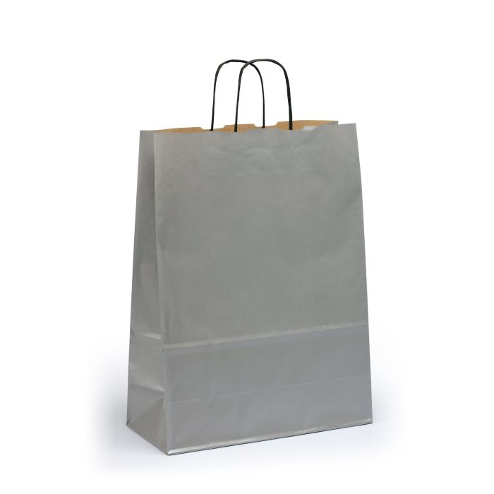 Sober papperskasse M med handtag av tvinnat papper. Bärkassarna har en extra förstärkt botten och är högkvalitativa.