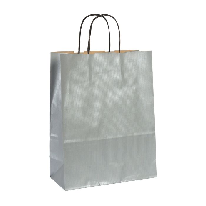 Sober papperskasse S med handtag av tvinnat papper. Bärkassarna har en extra förstärkt botten och är högkvalitativa.