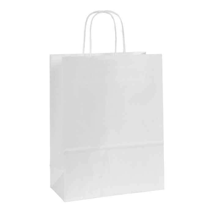 Sober papperskasse S med handtag av tvinnat papper. Bärkassarna har en extra förstärkt botten och är högkvalitativa.