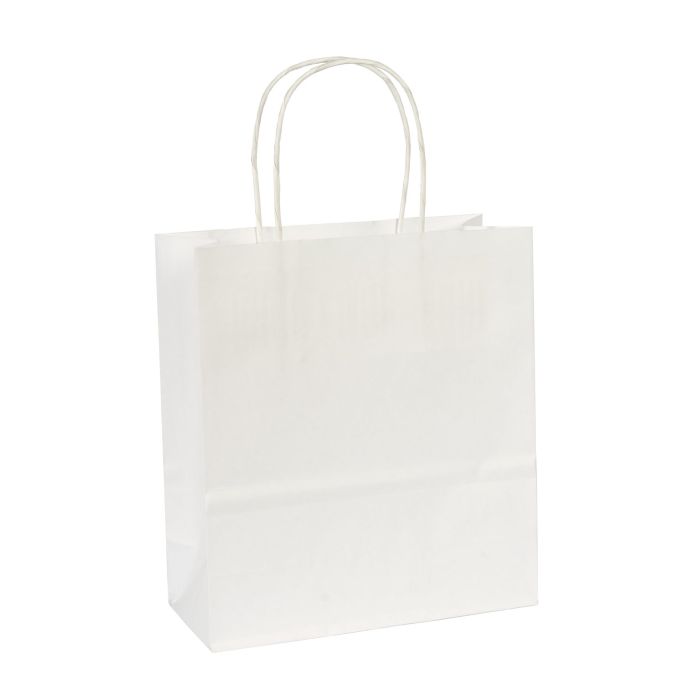 Sober papperskasse XS med handtag av tvinnat papper. Bärkassarna har en extra förstärkt botten och är högkvalitativa.