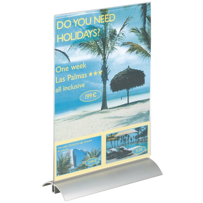 Enkelt att byta informationsblad. Läsbar från två håll – utrymmesbesparande.