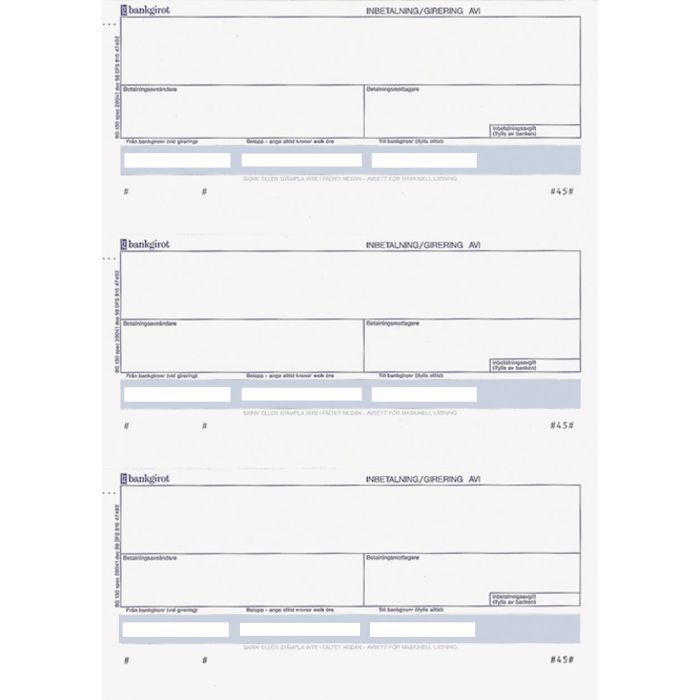 Bankgirotalong - Otryckt laserark, A4-ark i 90g papper. Perforerad 3x 4" talong. • 900/kt
