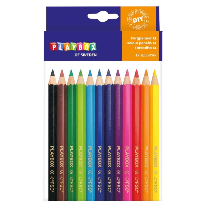 Färgpennor Jumbo från Playbox i 12 olika färger. 175 mm långa ø 10 mm tjocka.