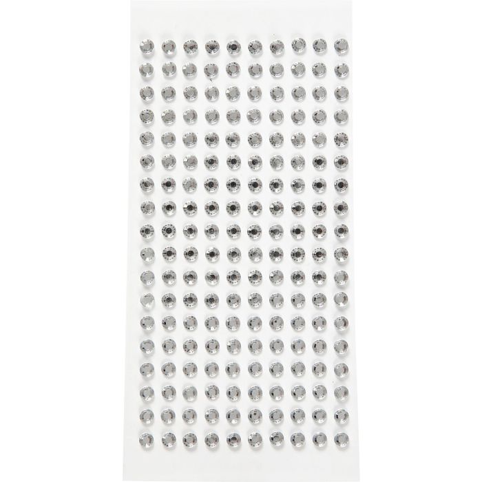 Självhäftande och runda rhinestones med facettslipad front och platt baksida. Silver 5 mm 144 st/fp .