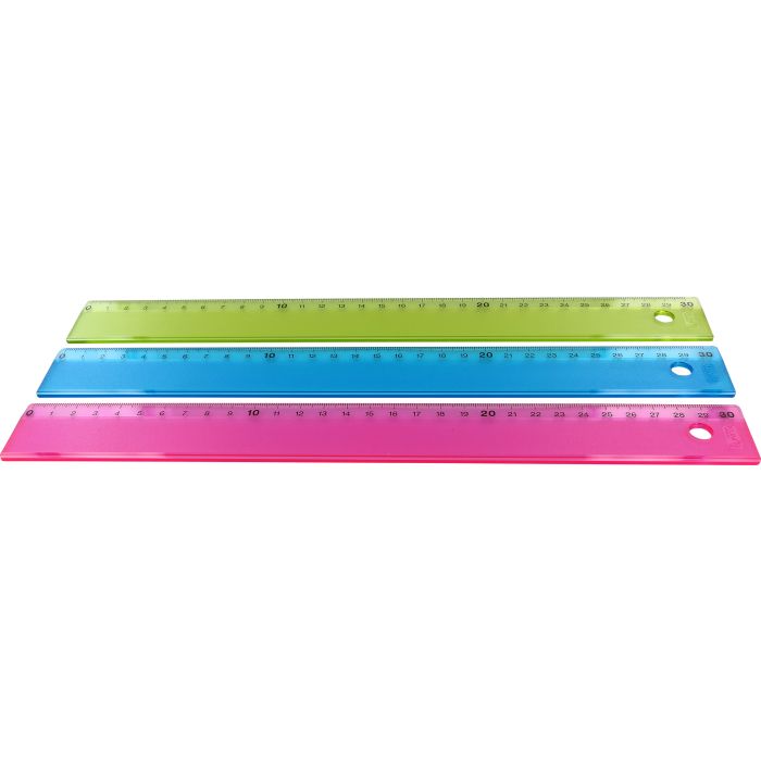 Linjaler av transparent färgad plast i sorterade färger. Hjälpmedlet på kontoret, i skolan och i hemmet när du behöver mäta eller dra raka linjer.