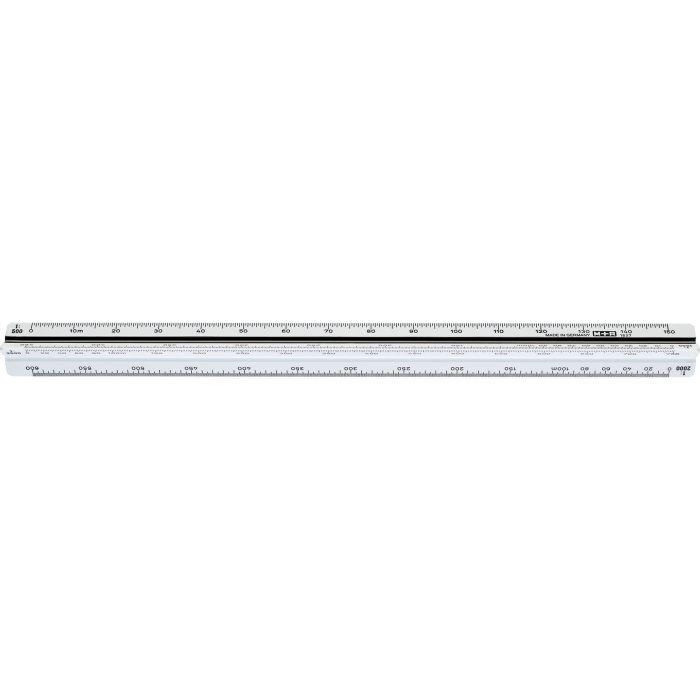 3-kantig skallinjal med 6 skalor med tydlig gradering, med olika skalor för mätning på ritningar och kartor. Levereras i ett skyddande plastetui.