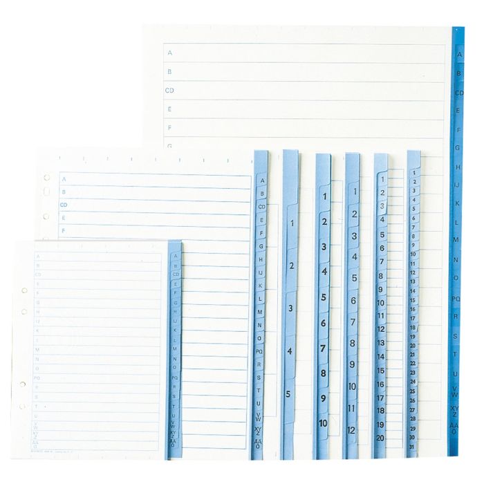 De förtryckta blå avdelare är användarvänliga och ger enkel indexering och identifiering av innehållet. De blå flikarna gör det dessutom enkelt att navigera bland dokumenten.