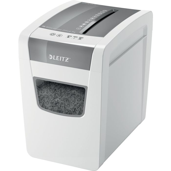 IQ Slim Home Office P4 dokumentförstörare från Leitz i elegant tunn design.