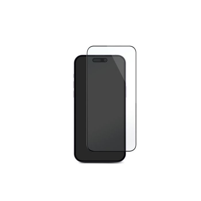 Skärmskydd till iPhone 15, tillverkat av härdat glas med 9H hårdhet. Skyddar mot repor men är också motståndskraftigt mot stötar.