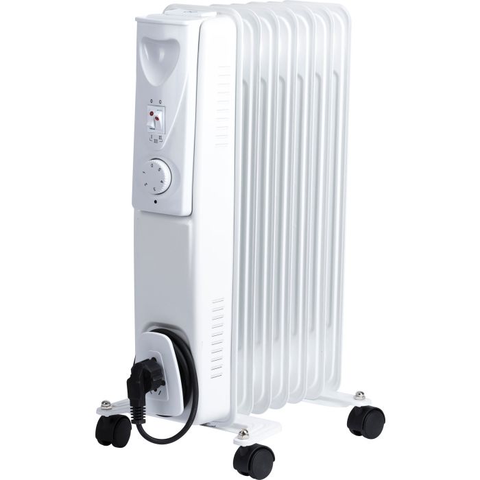 Oljefyllt värmeelement från Gelia på 1500W med svängbara hjul.