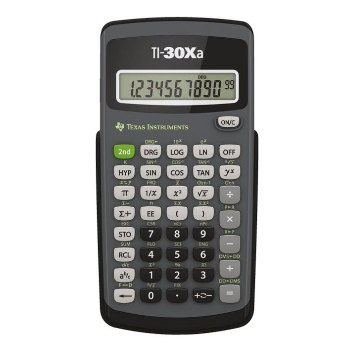 Grundläggande, batteridriven funktionsräknare TI-30XA från Texas har en enradig, 10-siffrig display och funktioner för allmän matematik och naturvetenskap. Bråkfunktioner, envariabelstatistik, omvandlingar mellan bråk och decimaltal m.m.