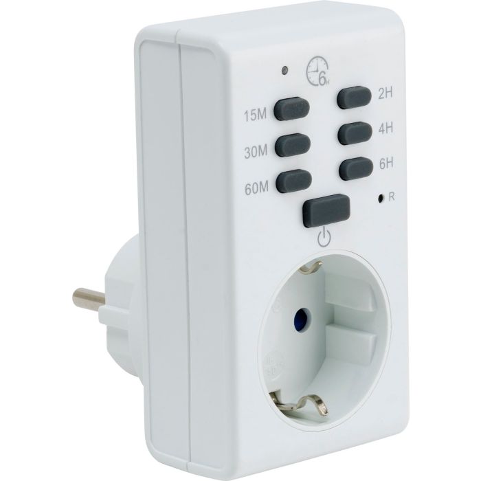 Säkerhetstimern är lättanvänd tidströmsställare där program ställs in genom att trycka på respektive knapp, från 15 min till 6 tim.