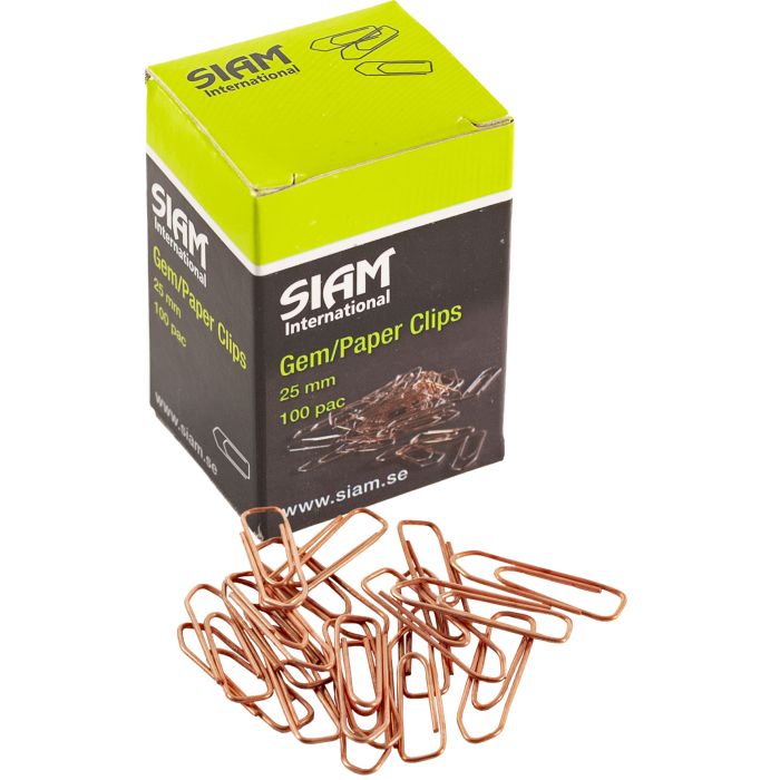 Kopparbelagda metallgem. Lätt att organisera dina papper med gem. Klassiska pappersklämmor i metall som du med ett effektivt sätt kan samla ihop lösa dokument. Stark och hållbar ståltråd som håller dokumenten på plats.